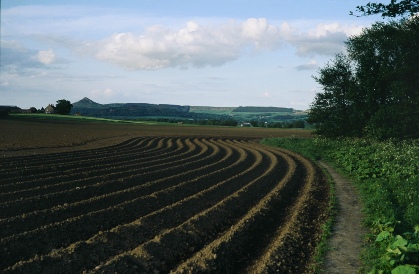 On a walk in North Yorkshire, with Roseberry Topping in the distance.