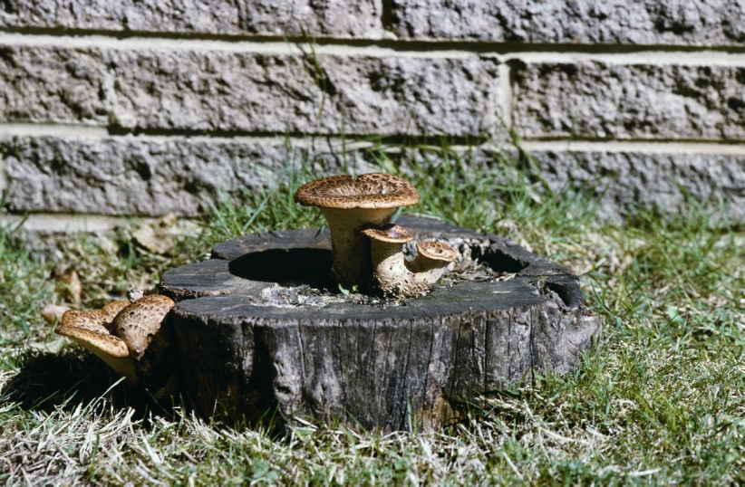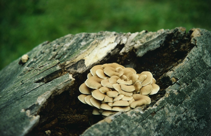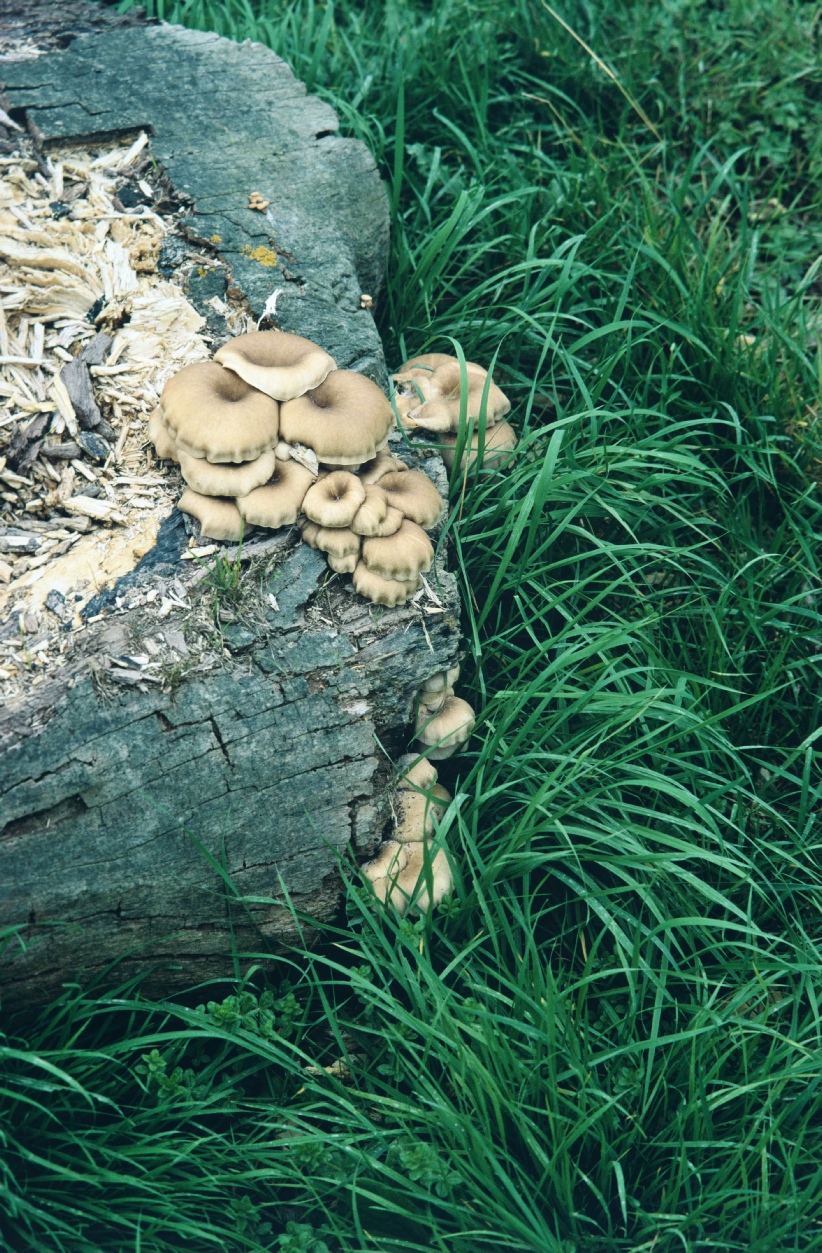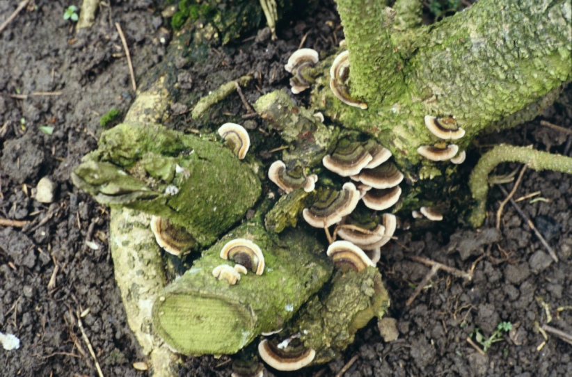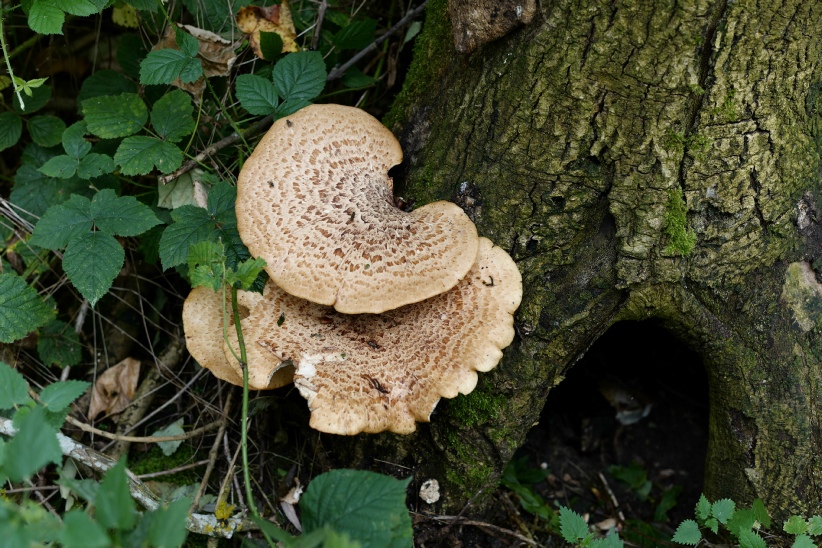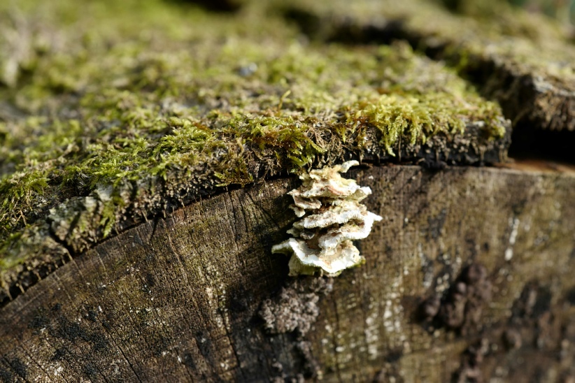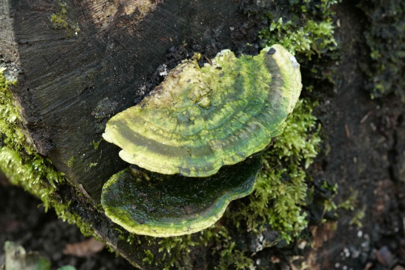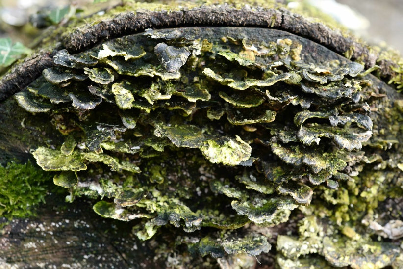 Fascinating to see the effect of fungi growing at the base of a tree chopped down, and how much it is covered.