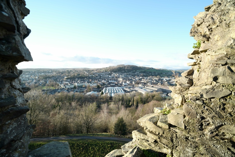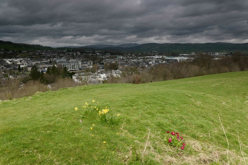 Overlooking Kendal, with the sky matching the grey of the limestone used in Kendal buildings, a distinctive feature of the town.
