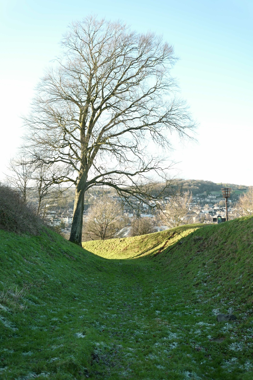 Here I am in ‘In the moat’, so to speak, looking to the side towards Kendal. Note the beacon on the right, which is lit on events such as VE Day.