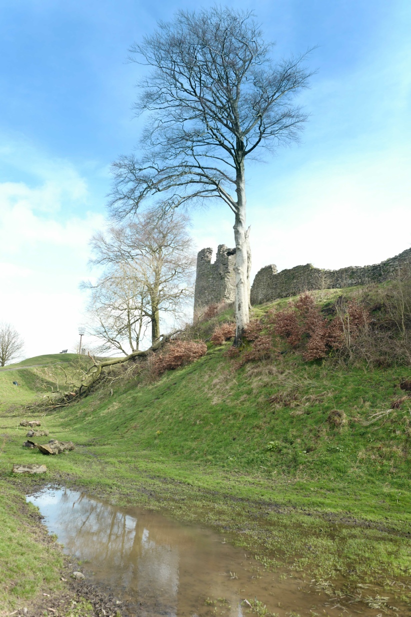 Looking from the moat towards the castle. One assumes the moat had more water in it when it was a working castle!